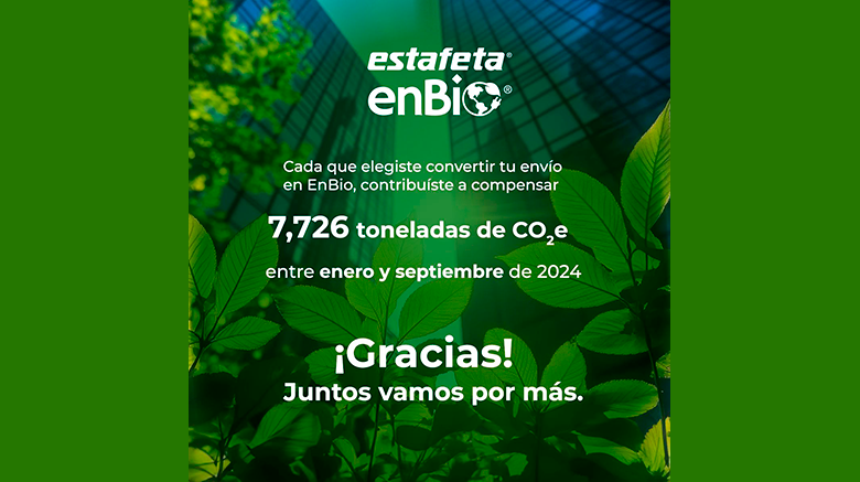 Estafeta dio a conocer el resultado alcanzado por sus clientes en favor del medio ambiente, quienes gracias al programa EnBio® lograron compensar 7,726 toneladas de dióxido de carbono equivalente (CO2e) en los 3 primeros trimestres de 2024.