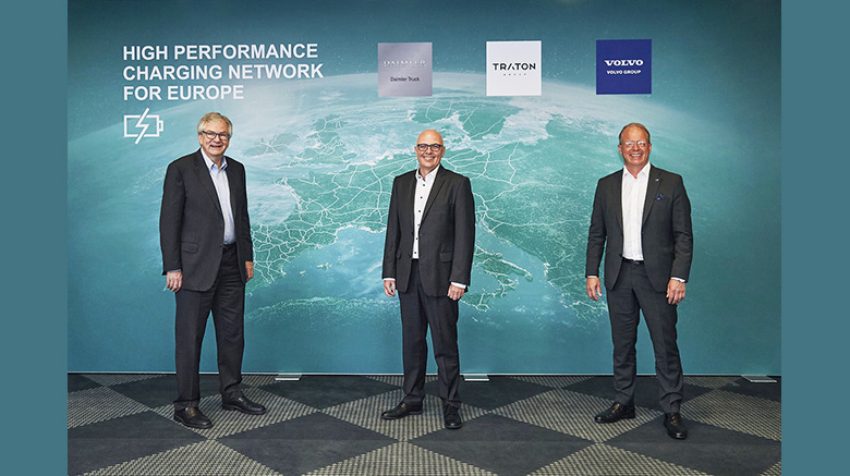 Daimler Truck, TRATON GROUP y Volvo Group firmaron un acuerdo no vinculante para instalar y operar una red pública de carga de alto rendimiento para baterías eléctricas pesadas. El objetivo es iniciar y acelerar la construcción de una infraestructura de carga, para mejorar la confianza del cliente y apoyar la transformación de la UE hacia un transporte neutro.
