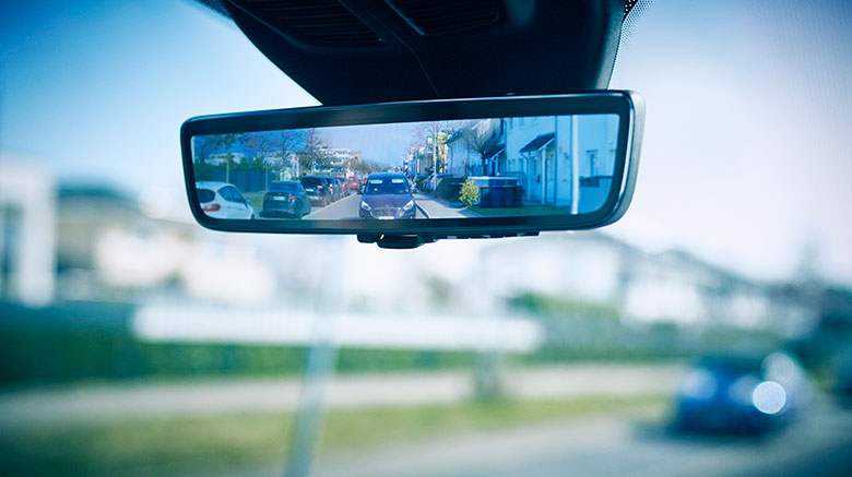 El espejo interior con pantalla completa muestra una imagen en directo de una cámara situada en la parte trasera del vehículo y cuenta con un control automático de brillo logrando una visibilidad óptima tanto de día como de noche. El sistema ofrece un campo de visión que duplica la anchura de un espejo retrovisor convencional, ayudando a los conductores a ser más conscientes de su entorno, por ejemplo, cuando se acercan a las glorietas, cambian de carril o cuando revisan alrededor antes de incorporarse o girar en calles laterales.