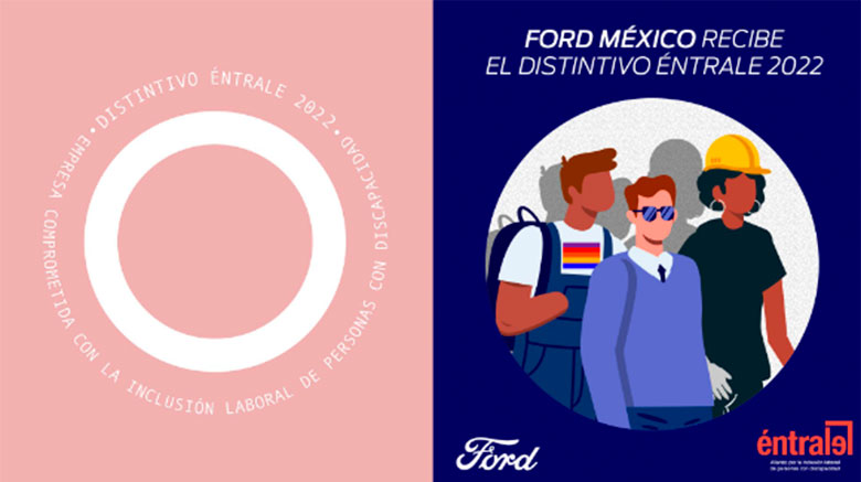 Ford de México recibió el Distintivo Éntrale 2022 por sus resultados obtenidos en el Índice de Inclusión Laboral de Personas con Discapacidad 2021, que otorga el Consejo Mexicano de Negocios.