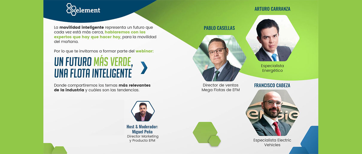 La movilidad eléctrica en México es un tema de interés, pero de significativo desconocimiento, por lo cual es importante educar a la industria y compartir la información disponible, pues todavía hay retos en toda Latinoamérica y a escala global sobre cómo impulsarla a través de las cadenas de valor y procesos de negocio, destacó Miguel Peña, Director Marketing y Producto de Element Fleet Management México durante el Panel: Un futuro más verde, una flota inteligente, organizado por la compañía.