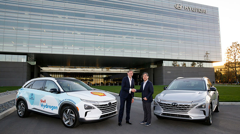 Jaehoon Chang, presidente y director ejecutivo de Hyundai Motor Company, y Huibert Vigeveno, director de producción de Shell, firmaron un Memorando de Entendimiento (MOU) en una ceremonia celebrada en la sede de Hyundai Motor America en Fountain Valley, California.