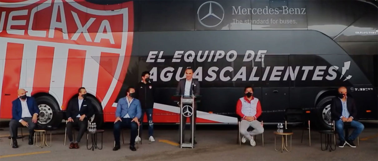 Mercedes-Benz Autobuses comprometida con el desarrollo del deporte, y reafirmando esta alianza comercial que inició en 2015, entregó a Club Necaxa el nuevo autobús totalmente equipado. El Equipo de Aguascalientes llegará al Estadio Victoria y a sus encuentros fuera de la ciudad, en una unidad totalmente diseñada a las necesidades del equipo en seguridad, confort, adaptabilidad y conectividad.