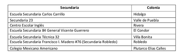 Para ello, se donarán a 5 secundarias un robot SPIKE PRIME para cada una, el cual será programado por grupos de alumnos para resolver el reto asignado. Por otra parte, las 2 secundarias restantes recibirán 2 Robotix in the Box (RIB) con 12 Eaglebots arduinos cada una. A continuación, se detallan las escuelas beneficiadas y su localidad.