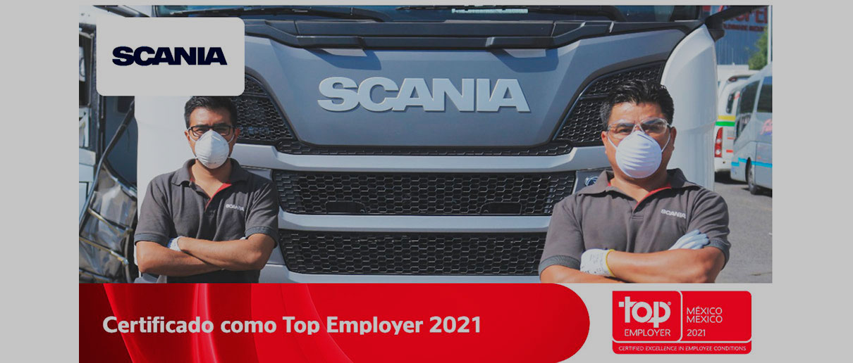 Scania México recibió la certificación Top Employers 2021 por su excelencia en prácticas de Recursos Humanos. Su liderazgo, valores, así como la ética e integridad con la que se desempeñan, fueron los tópicos mejor calificados.