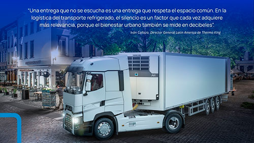 Ivan Collazo, gerente comercial de Thermo King Latinoamérica, destaca que “ahora, además de garantizar eficiencia energética y sustentabilidad, es importante prestarle más atención al ruido generado por los equipos de refrigeración móvil, ya que también tiene un impacto directo en la calidad de vida urbana. La transición hacia soluciones eléctricas es un tema de responsabilidad social”.