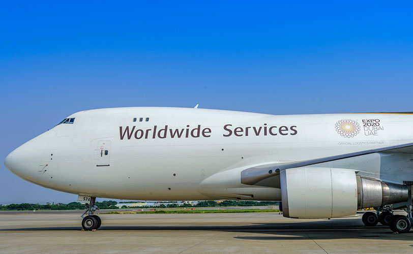 DUBAI, 12 DE JUNIO DE 2018 – Uno de los jets jumbo 747 de UPS, dedicado al uso internacional para distancias largas, presenta un diseño de pintura modificado que destaca el papel de la compañía como socio oficial de logística para la Expo 2020 Dubai.