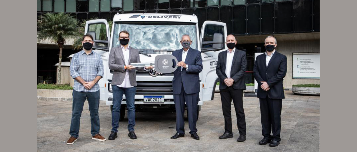 Este lunes, Roberto Cortes, presidente y CEO de VWCO, entregó a Rodrigo Figueiredo, vicepresidente de Sustentabilidad y Suministros de Ambev, las llaves del primer camión eléctrico de un lote de cien unidades adquiridas por la cervecera. Se trata de una iniciativa histórica y pionera llevada a cabo por Ambev y VWCO, que permitirá que una flota de esta dimensión de camiones eléctricos circule por las calles de Brasil antes de que termine 2021.